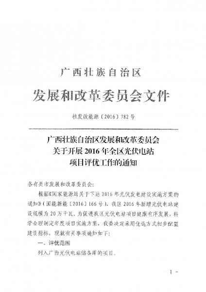廣西發(fā)改委關(guān)于開展2016年全區(qū)光伏電站項目評優(yōu)工作的通知