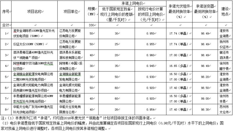 2016年度省光伏“領(lǐng)跑者”計(jì)劃項(xiàng)目