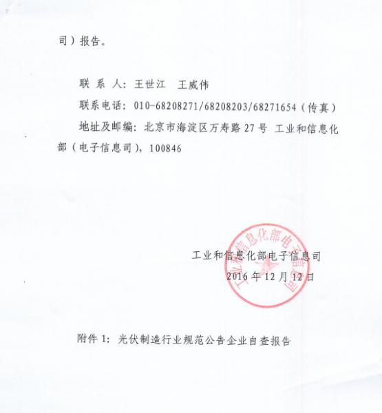 附件1:關(guān)于開展光伏制造行業(yè)規(guī)范公告企業(yè)自查工作的通知