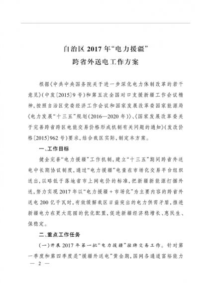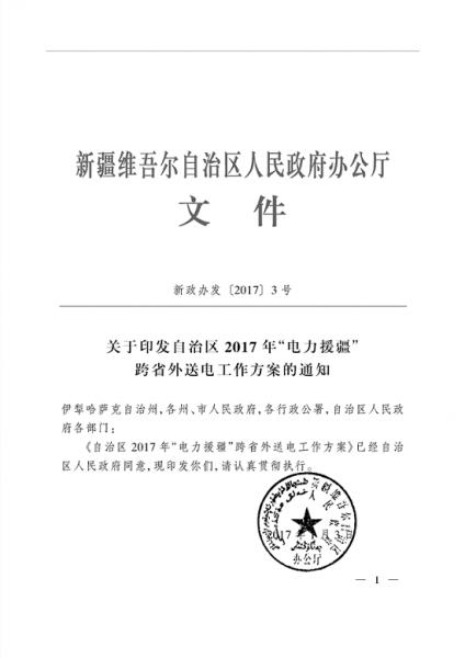 原標(biāo)題:關(guān)于印發(fā)自治區(qū)2017年“電力援疆”跨省外送電工作方案的通知