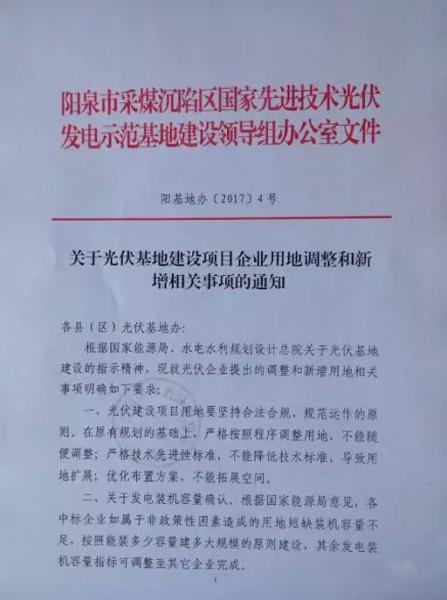 近日,陽泉市發(fā)布了關(guān)于光伏基地建設(shè)項(xiàng)目企業(yè)用地調(diào)整和新增相關(guān)事項(xiàng)的通知。通知要求,光伏建設(shè)項(xiàng)目用地要合法合規(guī),嚴(yán)格按照程序調(diào)整用地。裝機(jī)容量按照能裝多少容量建多大規(guī)模的原則建設(shè),同時(shí)將各光伏項(xiàng)目因政策因素不能使用的進(jìn)行認(rèn)定。