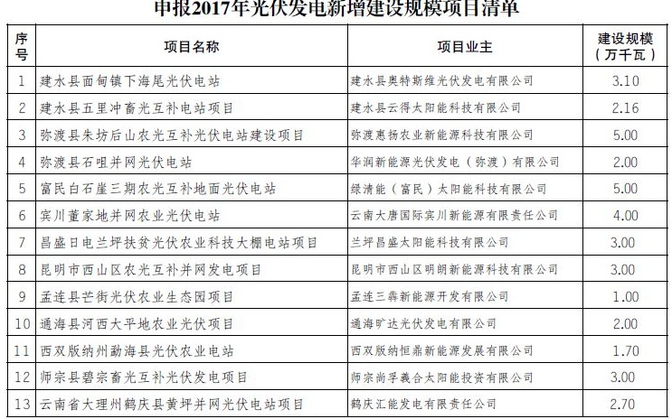 申報(bào)2017年光伏發(fā)電新增建設(shè)規(guī)模項(xiàng)目清單已公示期滿,現(xiàn)印發(fā)2017年光伏發(fā)電新增建設(shè)規(guī)模項(xiàng)目清單,并將有關(guān)事項(xiàng)通知如下: