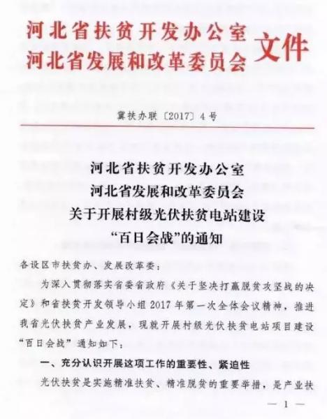 河北發(fā)改委扶貧辦開展村級光伏扶貧電站“百日會戰(zhàn)”