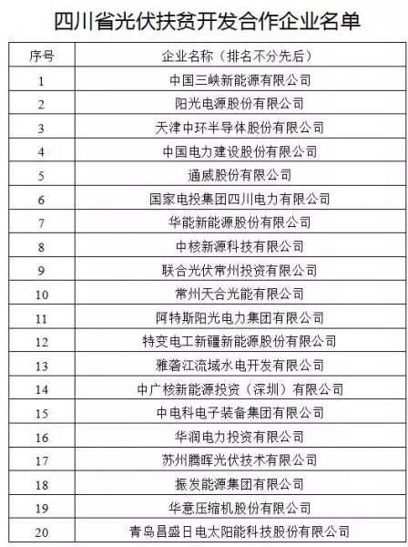 按照《四川省光伏發(fā)電扶貧工作實(shí)施意見》(川發(fā)改能源﹝2016﹞694號)的要求,公開選擇資金和技術(shù)實(shí)力強(qiáng)、講誠信的光伏開發(fā)企業(yè)參與我省光伏扶貧工程,保障光伏扶貧工作順利推進(jìn)! 〗衲1月4日,四川省能源局在省發(fā)展改革委門戶網(wǎng)站上發(fā)布了《四川省光伏扶貧開發(fā)企業(yè)優(yōu)選公告》,在企業(yè)自愿報名基礎(chǔ)上