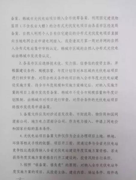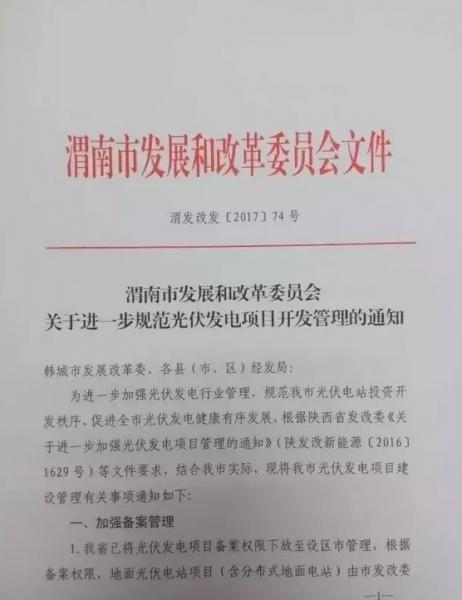 陜西渭南市發(fā)改委《關(guān)于進(jìn)一步規(guī)范光伏發(fā)電項(xiàng)目開發(fā)管理的通知》