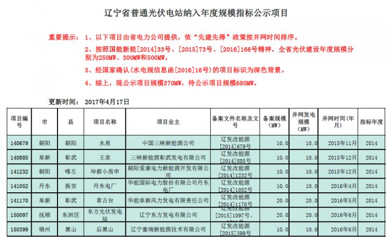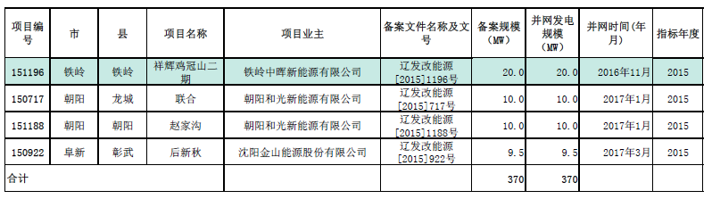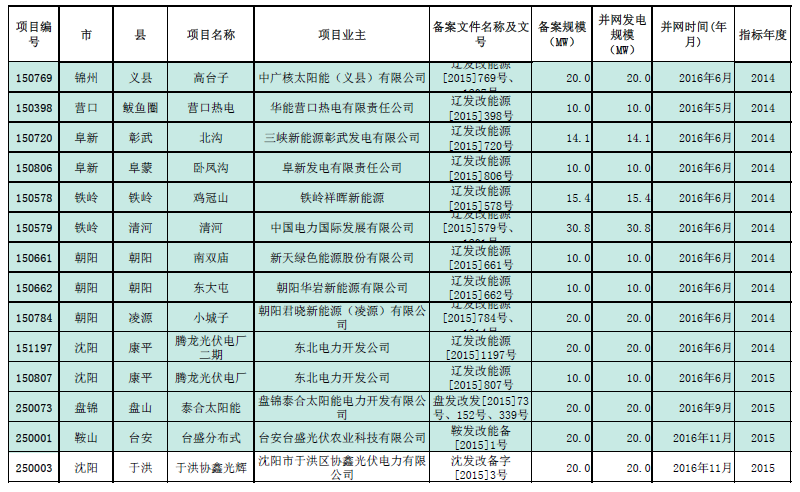 遼寧省普通光伏電站納入年度規(guī)模指標(biāo)公示項(xiàng)目