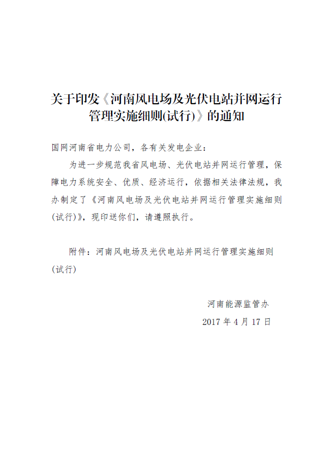 河南風(fēng)電場及光伏電站并網(wǎng)運行管理實施細(xì)則(試行)