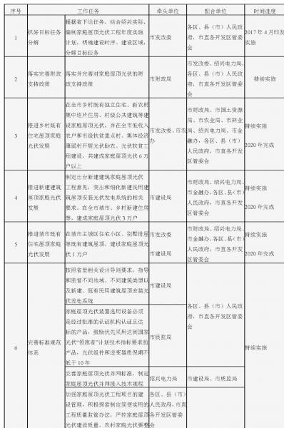 全市家庭屋頂光伏工程重點(diǎn)任務(wù)分工和進(jìn)度安排表