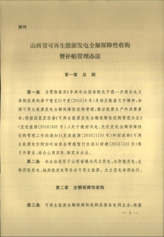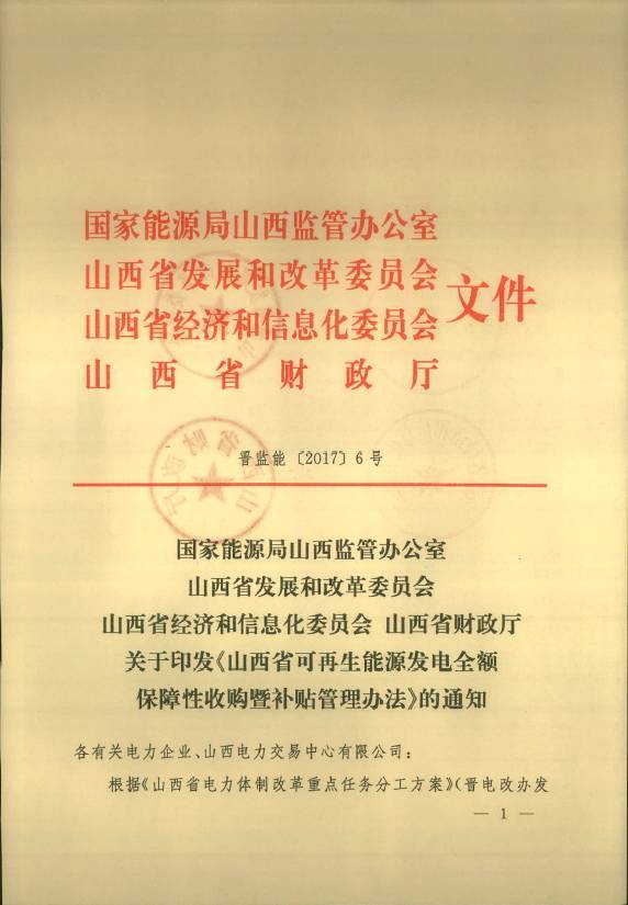 近日,山西能監(jiān)辦、山西發(fā)改委、山西經(jīng)化委、山西財(cái)政廳聯(lián)合下發(fā)關(guān)于《山西省可再生能源發(fā)電全額保證性收購暨補(bǔ)貼管理辦法》的通知,該補(bǔ)貼管理辦法適用于山西省境內(nèi)風(fēng)力發(fā)電、太陽能發(fā)電、生物質(zhì)能發(fā)電、地?zé)崮馨l(fā)電等可再生能源項(xiàng)目,其中明確分布式光伏發(fā)電項(xiàng)目暫不參與市場競爭,上網(wǎng)電量由電網(wǎng)企業(yè)全額收購;另明確規(guī)定,分布式光伏發(fā)電項(xiàng)目,按照國家和山西省政策規(guī)定,區(qū)分自然人和非自然人發(fā)電項(xiàng)目采用不同流程。