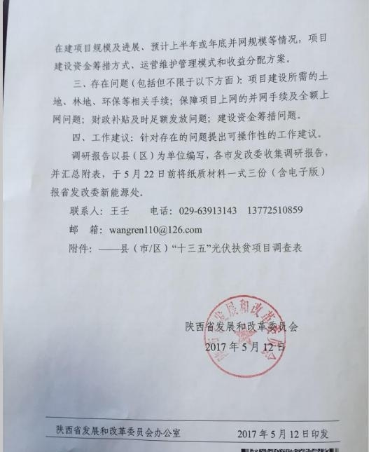 為進(jìn)一步推動(dòng)我省光伏扶貧工作,制定我省支持光伏扶貧相關(guān)政策,更大程度爭(zhēng)取國(guó)家層面支持,請(qǐng)對(duì)轄區(qū)內(nèi)光伏扶貧工作開(kāi)展情況進(jìn)行調(diào)查摸底,按照下述要求形成調(diào)研報(bào)告! ∫、總體情況:各縣(區(qū))光伏扶貧實(shí)施方案編制及批復(fù)情況,成立光伏扶貧專(zhuān)門(mén)機(jī)構(gòu)情況,制定土地、林地、稅費(fèi)優(yōu)惠等相應(yīng)的支持政策情況。