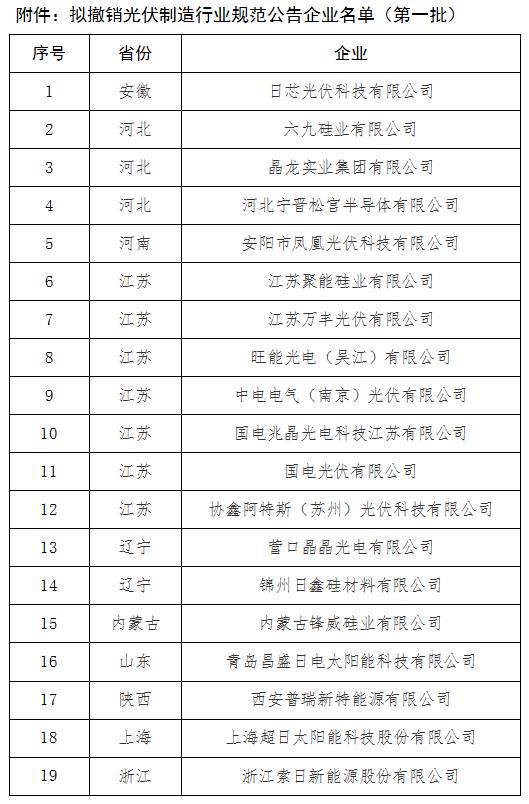 關(guān)于擬撤銷光伏規(guī)范公告企業(yè)名單(第一批)的公示
