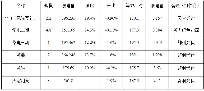 各光伏電場5月份發(fā)電量 單位:萬千瓦、萬千瓦時