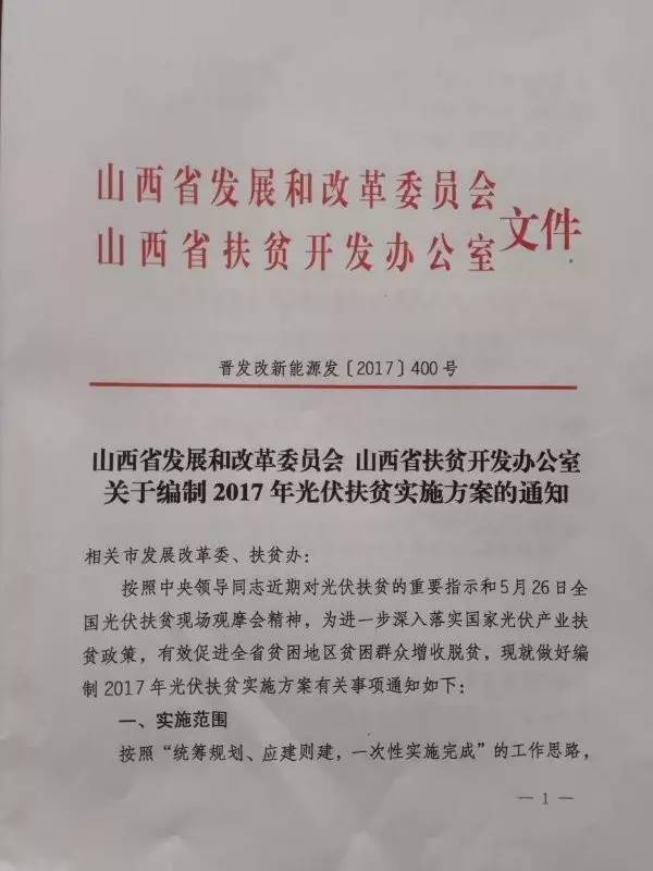山西省發(fā)改委、扶貧辦關于編制2017年光伏扶貧實施方案的通知