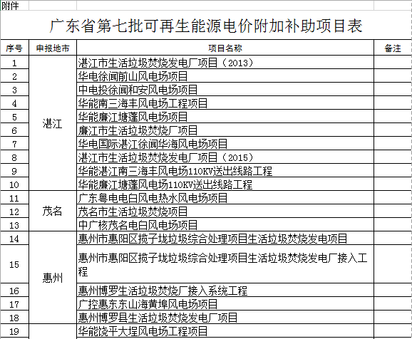 附件:廣東省第七批可再生能源電價附加補助項目