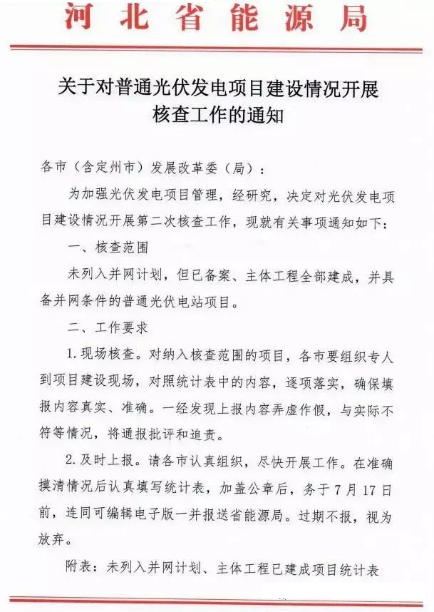 河北核查已完工而未列入并網計劃的普通光伏項目