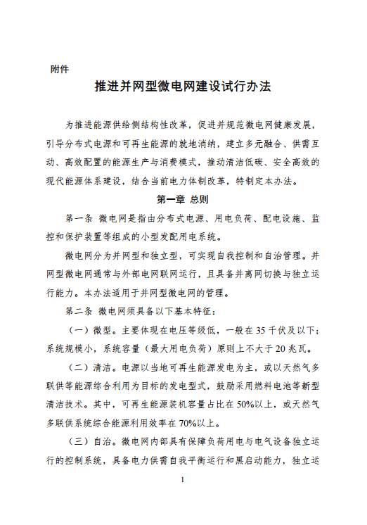 為有力推進電力體制改革,切實規(guī)范、促進微電網(wǎng)健康有序發(fā)展,建立集中與分布式協(xié)同、多元融合、供需互動、高效配置的能源生產(chǎn)與消費體系,特制定《推進并網(wǎng)型微電網(wǎng)建設試行辦法》,現(xiàn)印發(fā)你們,請按照執(zhí)行。