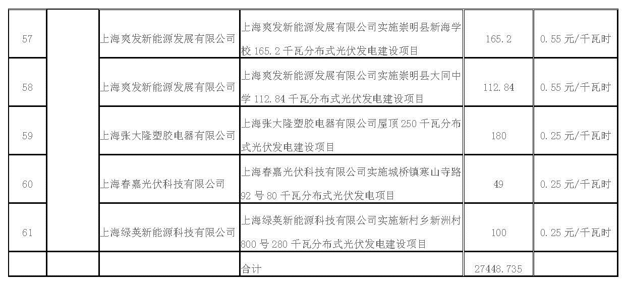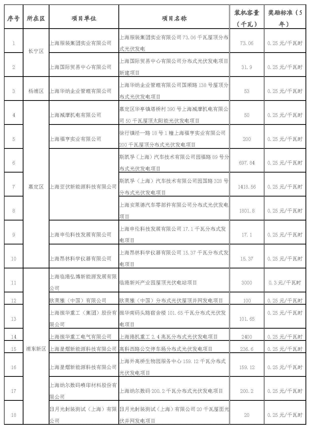 根據(jù)《上海市可再生能源和新能源發(fā)展專項資金扶持辦法》(滬發(fā)改能源〔2016〕136號),市發(fā)展改革委會同相關部門和單位,組織開展了2017年第一批可再生能源和新能源發(fā)展專項資金扶持項目的申報和評審工作。在專家評審意見的基礎上,經(jīng)審核,上海服裝集團實業(yè)有限公司73.06千瓦屋頂分布式光伏發(fā)電項目等61個光伏項目(共27448.735千瓦)和1313戶個人光伏(共8179.206千瓦)符合條件,列入市可再生能源和新能源發(fā)展專項資金獎勵目錄予以支持(詳見附件)。