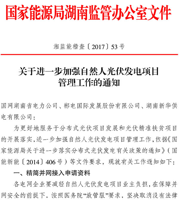 湖南:關(guān)于進一步加強自然人光伏發(fā)電項目管理工作的通知