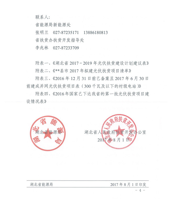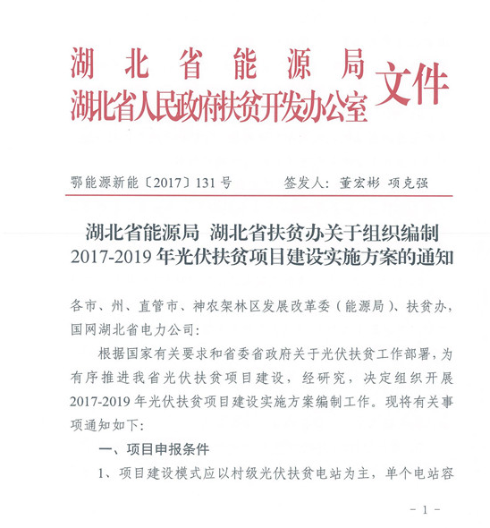 湖北省能源局、扶貧辦關(guān)于組織編制2017-2019年光伏扶貧項目建設(shè)實施方案的通知