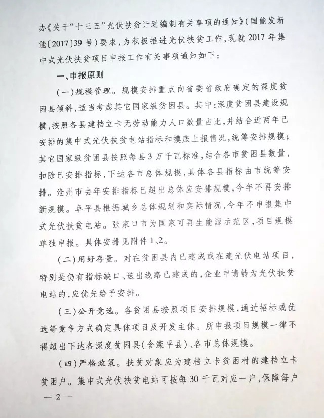 河北2017年集中式光伏扶貧項(xiàng)目開始申報(bào) 總量1G瓦