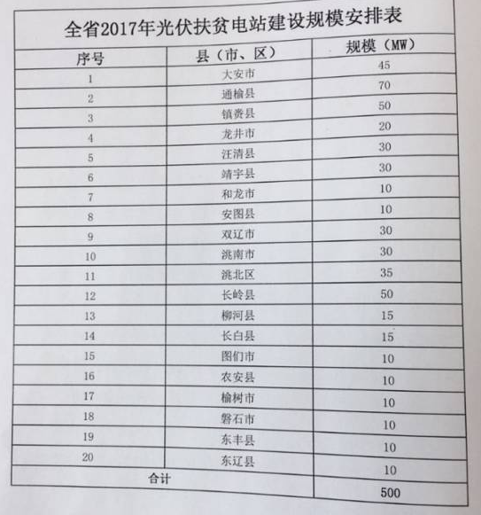 附件:吉林省2017年光伏扶貧電站建設(shè)規(guī)模安排表: