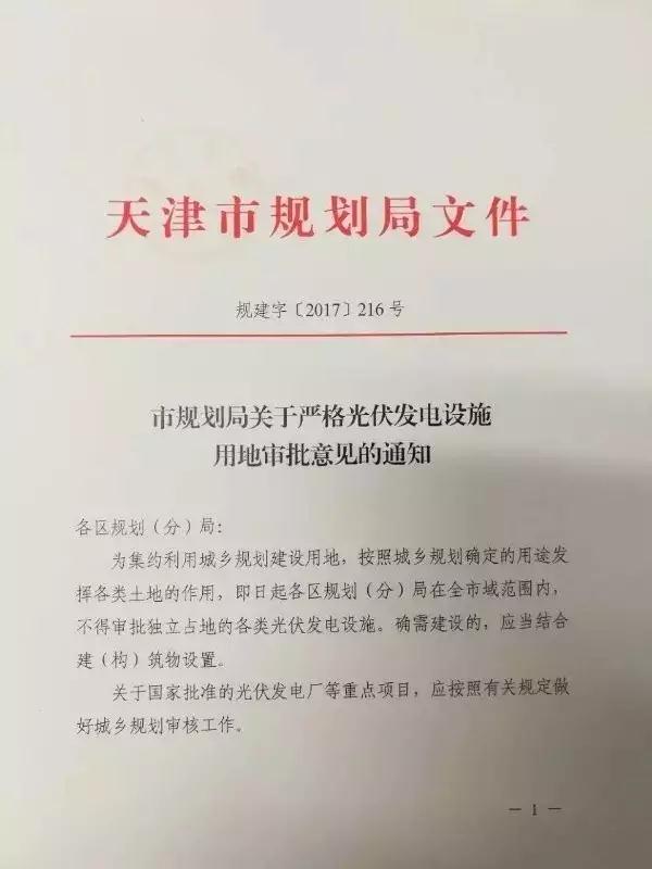 日前,天津市規(guī)劃局出臺(tái)關(guān)于嚴(yán)格光伏發(fā)電設(shè)施用地審批意見(jiàn)的通知,要求即日起各區(qū)規(guī)劃(分)局在全市范圍內(nèi),不得審批獨(dú)立占地的各類光伏發(fā)電設(shè)施,確需建設(shè)的,應(yīng)當(dāng)結(jié)合建(構(gòu))筑物設(shè)置。同時(shí)文件要求“國(guó)家批準(zhǔn)的光伏發(fā)電廠等重點(diǎn)項(xiàng)目,應(yīng)按照有關(guān)規(guī)定做好城鄉(xiāng)規(guī)劃審核工作”。