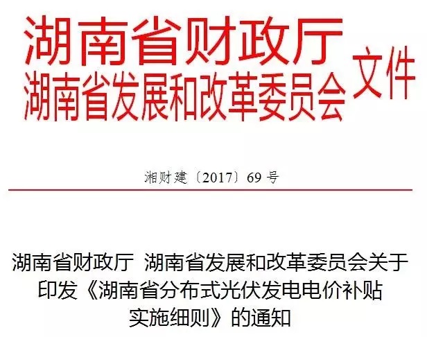 湖南省分布式光伏發(fā)電電價(jià)補(bǔ)貼實(shí)施細(xì)則