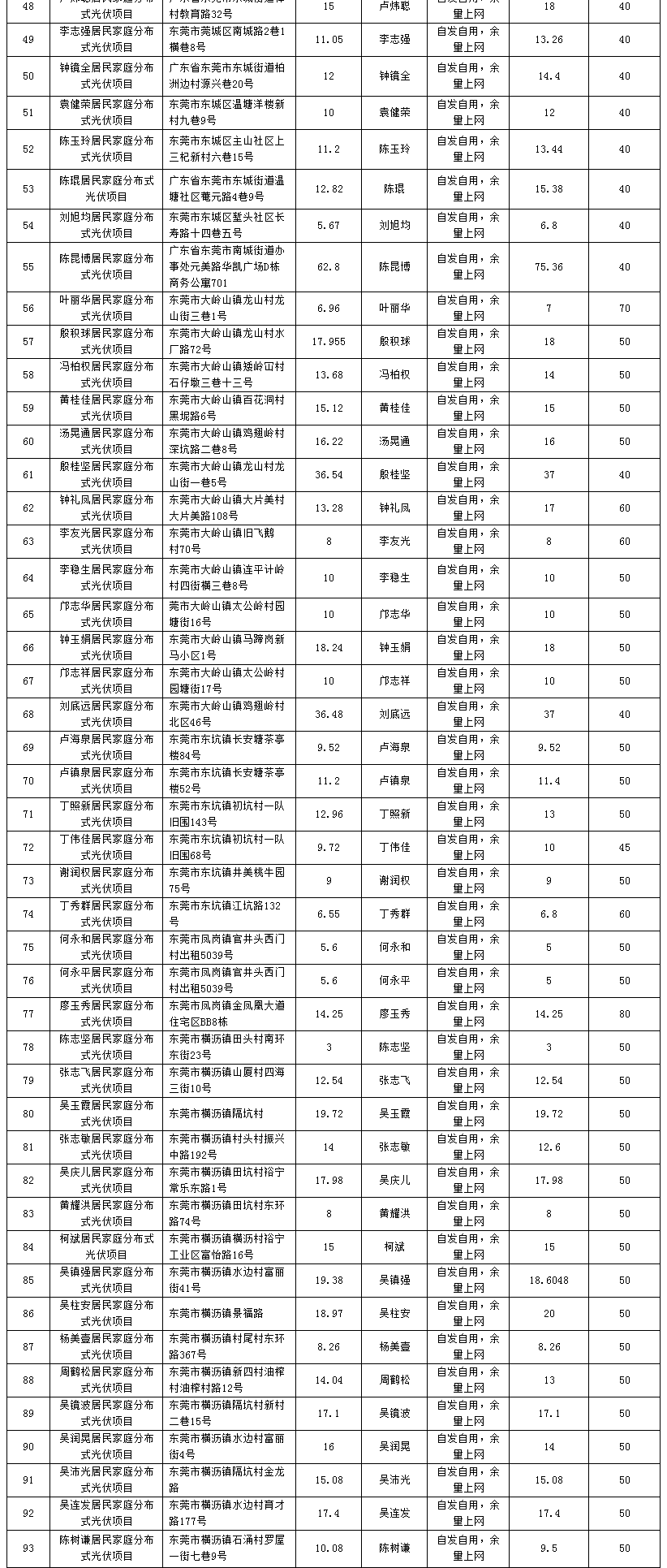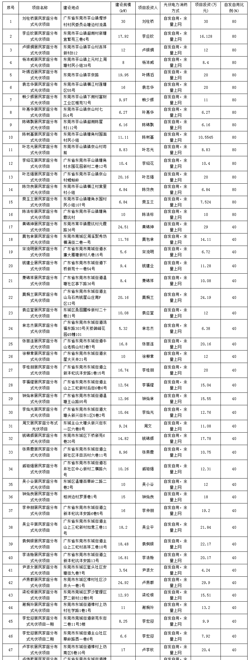 廣東電網(wǎng)有限責(zé)任有限公司東莞供電局: 發(fā)來《廣東電網(wǎng)有限責(zé)任供電東莞供電局關(guān)于報(bào)送第十九期居民家庭分布式光伏項(xiàng)目備案資料的函》(東電函〔2017〕225號(hào))及相關(guān)材料收悉。經(jīng)審查,同意第十九期居民家庭分布式光伏項(xiàng)目備案如下:
