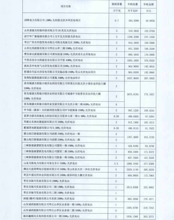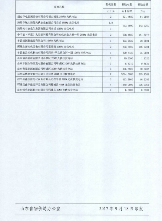 山東物價(jià)局關(guān)于2017年2季度風(fēng)力光伏發(fā)電項(xiàng)目電價(jià)補(bǔ)貼的通知,原文件如下: 涉及的光伏項(xiàng)目如下: