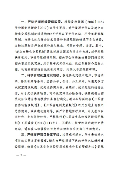 江蘇省發(fā)改委下達(dá)2017年度光伏電站新增建設(shè)規(guī)模和組織編制實(shí)施方案 新增建設(shè)規(guī)模1205MW