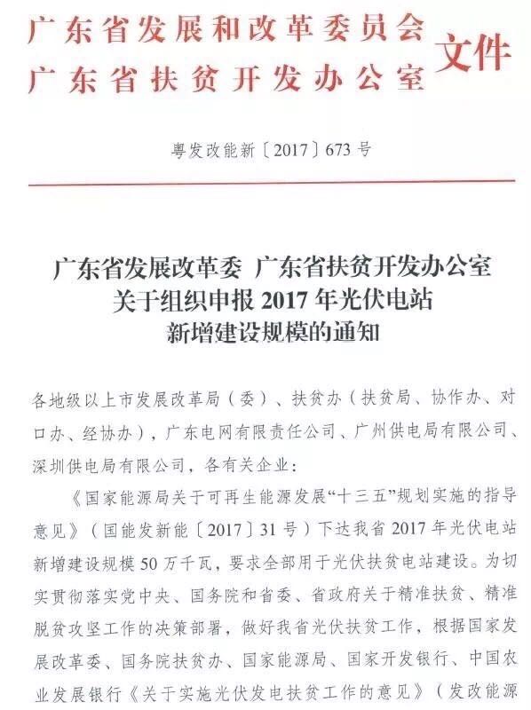 近日,廣東省發(fā)改委和廣東省扶貧辦聯(lián)合發(fā)布《組織申報2017年光伏電站新增建設(shè)規(guī)模的通知》,要求2017年500MW新增建設(shè)規(guī)模全部用于光伏扶貧,其中村級電站每戶對應(yīng)5-7千瓦、集中式電站每戶對應(yīng)25-30千瓦。指標(biāo)分配將優(yōu)先支持已建成、還未取得年度建設(shè)規(guī)模指標(biāo)的光伏扶貧項目;此外村級電站優(yōu)先納入建設(shè)規(guī)模。從地區(qū)上看,原