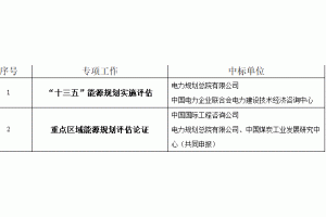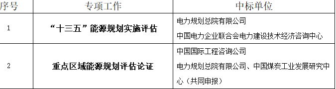 國(guó)家能源局2017年能源規(guī)劃實(shí)施評(píng)估專(zhuān)項(xiàng)工作公開(kāi)招標(biāo)中標(biāo)結(jié)果