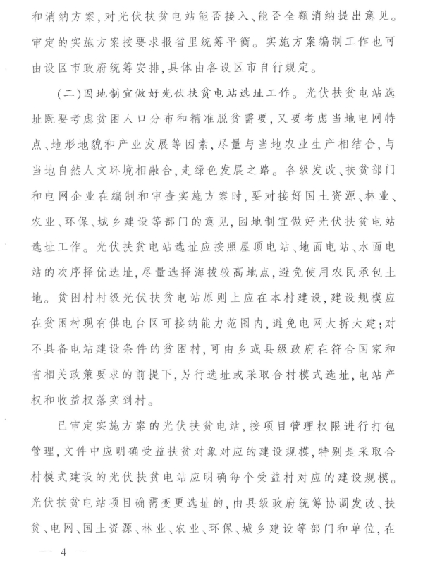 二是精準(zhǔn)定位扶持對(duì)象。以村級(jí)光伏扶貧電站為主,力爭(zhēng)用1-2年時(shí)間,加快村級(jí)光伏電站對(duì)實(shí)施《中國農(nóng)村扶貧開發(fā)綱要 (2011-2020)》扶持建檔立卡貧困村的全覆蓋。