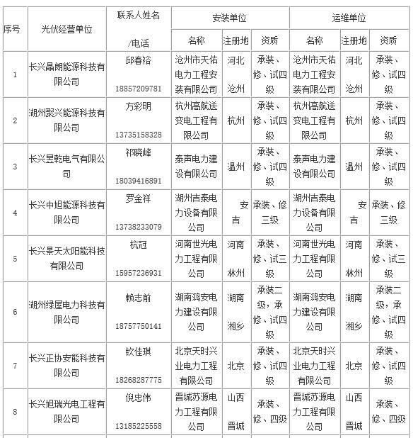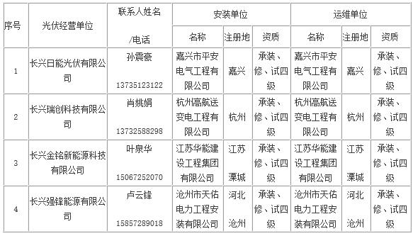 長(zhǎng)興縣家庭屋頂光伏規(guī)范企業(yè)名單(第一批)