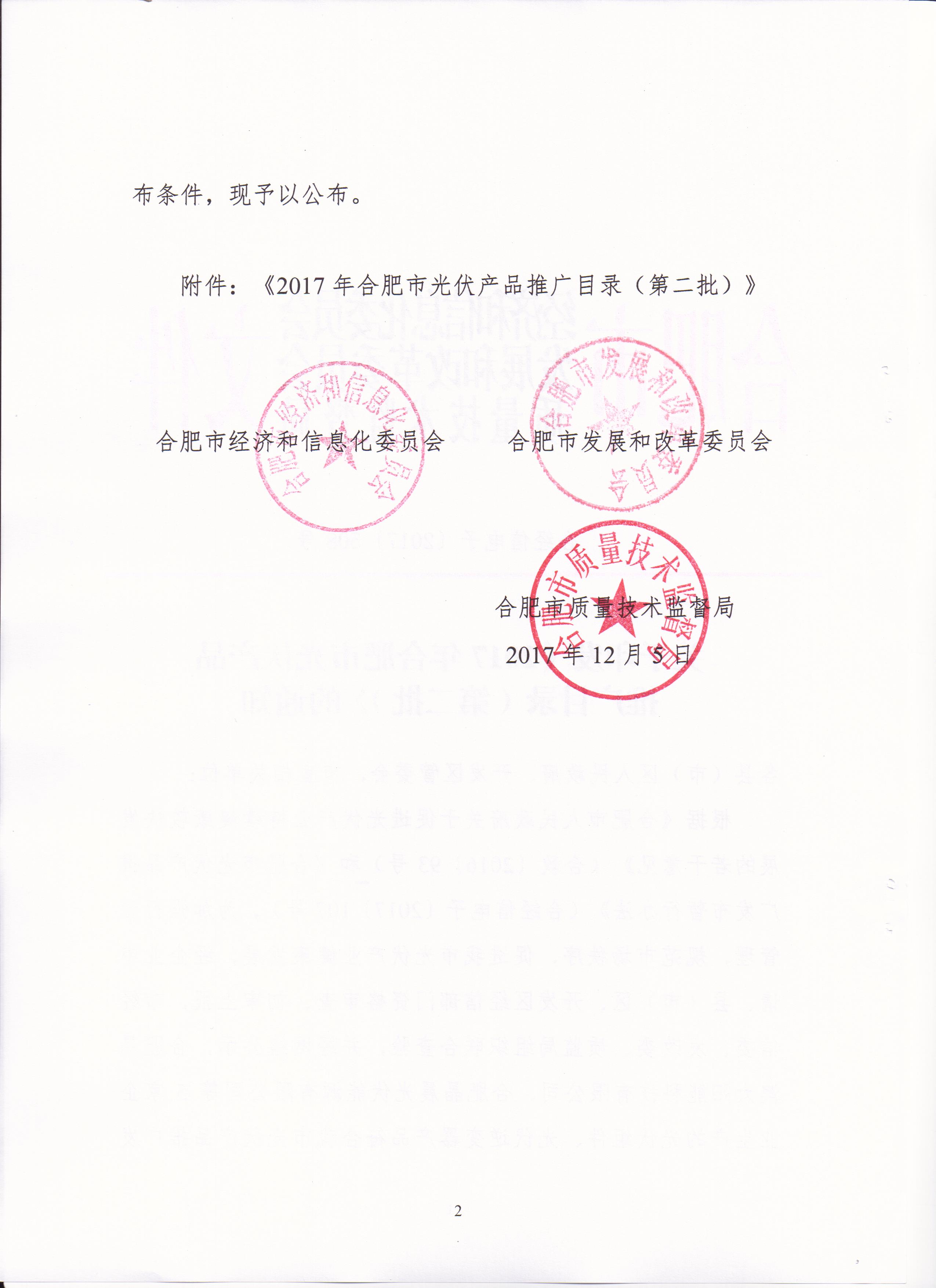 2017年合肥市光伏產(chǎn)品推廣目錄(第二批)