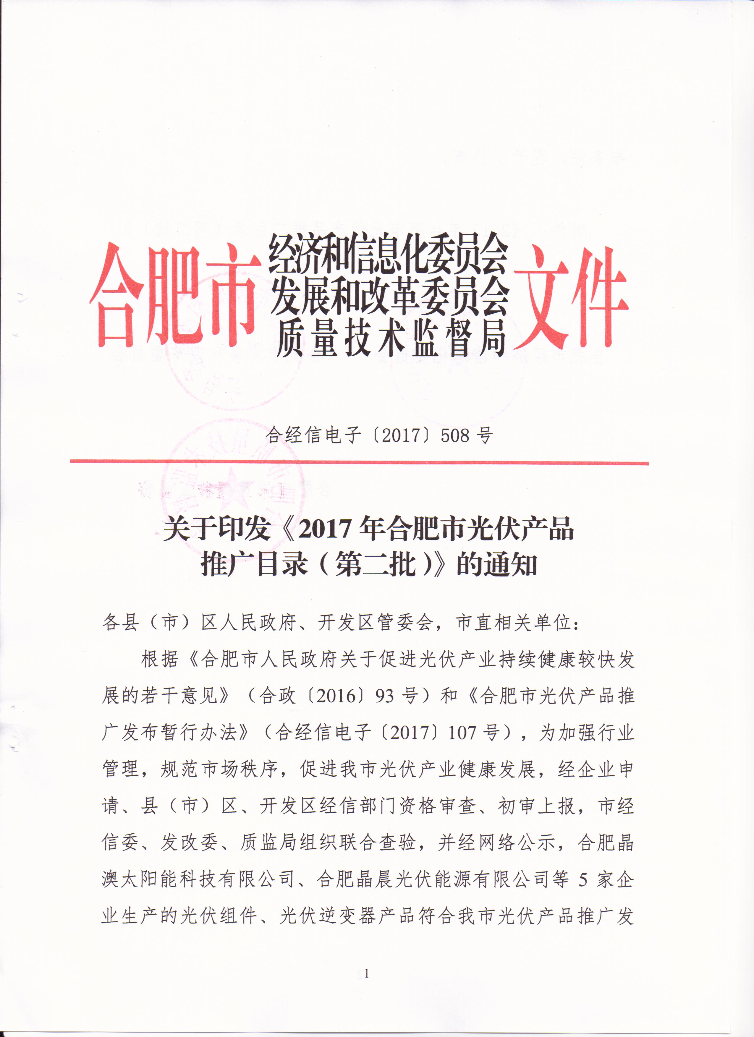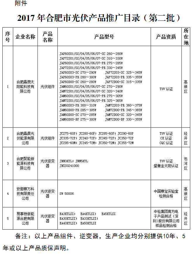 2017年合肥市光伏產(chǎn)品推廣目錄(第一批)