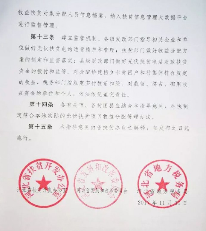 河北印發(fā)《關(guān)于光伏扶貧收益分配的指導(dǎo)意見(jiàn)》