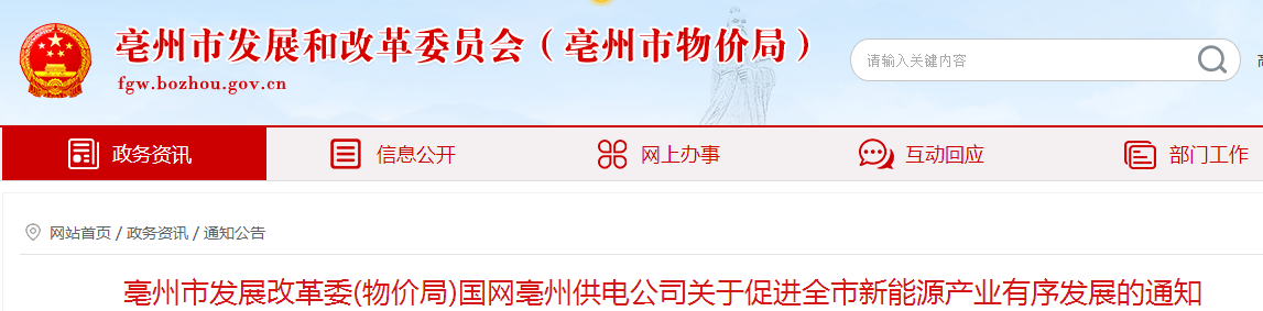 亳州市發(fā)展改革委(物價(jià)局)國(guó)網(wǎng)亳州供電公司關(guān)于促進(jìn)全市新能源產(chǎn)業(yè)有序發(fā)展的通知