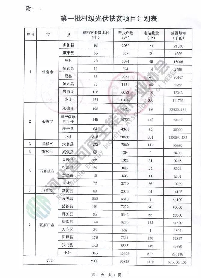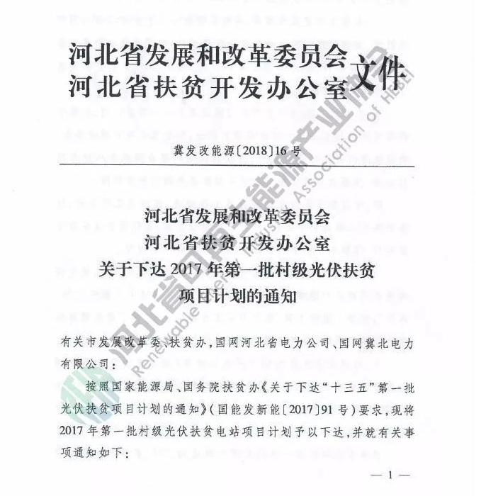 河北省下達(dá)2017年第一批村級光伏扶貧項目計劃