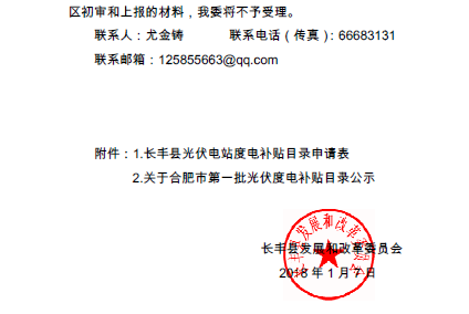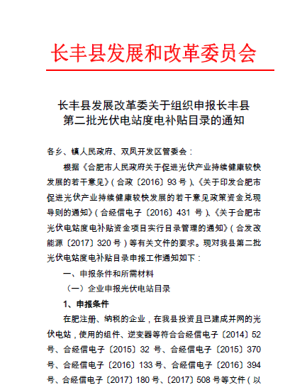 安徽長(zhǎng)豐縣申報(bào)第二批光伏電站度電補(bǔ)貼目錄 截止時(shí)間1月23日
