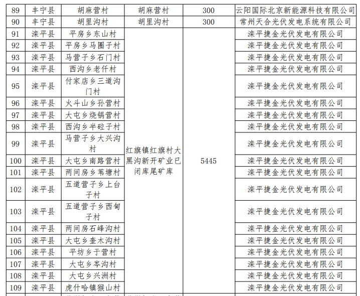 二、同意灤平縣村級光伏扶貧電站建設(shè)企業(yè)由灤平縣農(nóng)村建設(shè)有限公司變更為灤平捷金光伏發(fā)電有限公司。同意平坊鄉(xiāng)東山村、平坊鄉(xiāng)馬圈子村、馬營子鄉(xiāng)石門村、西溝鄉(xiāng)老仟村、付家店鄉(xiāng)三道溝門村、火斗山鄉(xiāng)孫營村、大屯鄉(xiāng)鍋營村、西溝鄉(xiāng)半砬子村、馬營子鄉(xiāng)大興溝村、大屯鄉(xiāng)路南營村、兩間房鄉(xiāng)葦塘村、五道營子鄉(xiāng)上臺子村、五道營子鄉(xiāng)西甸子村、兩間房鄉(xiāng)石峰溝村、大屯鄉(xiāng)奎木溝村、平坊鄉(xiāng)于營村、大屯鄉(xiāng)岑溝村、大屯鄉(xiāng)興洲村、虎什哈鎮(zhèn)猴山村采取19村聯(lián)建的方式,建設(shè)地點(diǎn)變更為灤平縣紅旗鎮(zhèn)紅旗村大黑溝新開礦業(yè)尾礦庫,裝機(jī)規(guī)模5445千瓦。