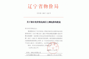 遼寧省物價局印發(fā)遼價函〔2017〕122號《關(guān)于部分光伏發(fā)電項目上網(wǎng)電價的批復》,對遼寧省有指標的光伏電站項目進行電價明確,共有13個光伏項目納入遼寧省2015年光伏指標,取得0.88元/度的標桿上網(wǎng)補貼電價。