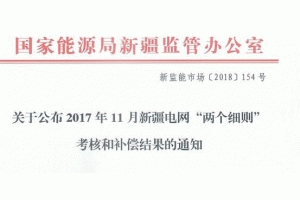 11月1日,國家能源局新疆監(jiān)管辦印發(fā)關(guān)于公布2017年11月新疆電網(wǎng)“兩個(gè)細(xì)則”考核和補(bǔ)償結(jié)果的通知