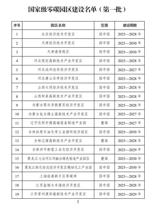 12月26日,國(guó)家發(fā)展改革委辦公廳、工業(yè)和信息化部辦公廳、國(guó)家能源局綜合司聯(lián)合印發(fā)《國(guó)家級(jí)零碳園區(qū)建設(shè)名單(第一批)》的通知(