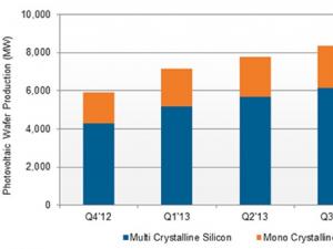 圖一、Q4’12-Q4’13硅片產(chǎn)量按技術(shù)類別