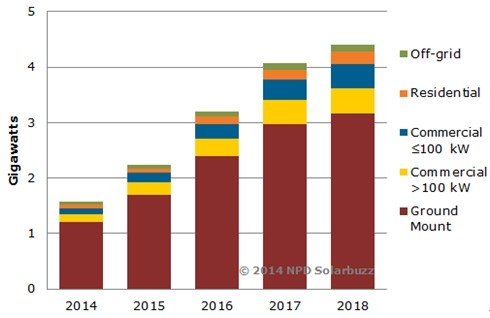 在大多數(shù)中東國家,可再生能源被視作是保護(hù)國內(nèi)石油和天然氣儲量的一種手段。NPD Solarbuzz預(yù)測,2018年中東光伏需求量將達(dá)到2.2GW,并有升至4GW的潛力。依靠基于凈電量計量的太陽能屋頂和地面電站項目,以色列有望成為2014年中東地區(qū)最大的光伏市場。
