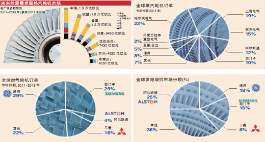 一邊是發(fā)達(dá)國(guó)家由于經(jīng)濟(jì)復(fù)蘇仍然疲軟所致的電力需求減弱,一邊是發(fā)展中國(guó)家急需更多的電力供應(yīng)。據(jù)《金融時(shí)報(bào)》分析,未來(lái)電力需求的最大來(lái)源是中國(guó)和印度。目前兩國(guó)人均用電量分別為美國(guó)的三分之一和十五分之一,而如果這兩國(guó)的人均消費(fèi)達(dá)到美國(guó)的水平,世界用電量就會(huì)達(dá)到目前水平的兩倍以上。此外,從長(zhǎng)遠(yuǎn)來(lái)看,未來(lái)渦輪機(jī)的需求將來(lái)源于中低收入國(guó)家。據(jù)國(guó)際能源署預(yù)計(jì),2014-2035年期間,全球?qū)⒑馁Y大約2.58萬(wàn)億美元用于燃?xì)夂腿济喊l(fā)電,而其中三分之二的耗資將出自發(fā)展中國(guó)家。