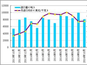 圖1 2013年10月-2014年10月多晶硅進口量及進口均價示意圖