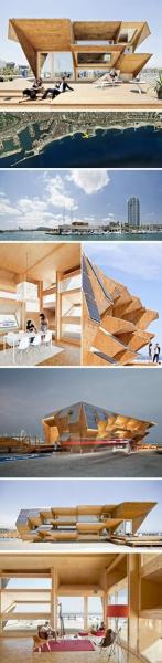 (位于巴塞羅那海灘的ENDESA館,依靠太陽能電池達(dá)到能源自給自足,所以它的設(shè)計(jì)依循能源的獲取方式,南側(cè)開放,北側(cè)封閉,對(duì)環(huán)境和氣候做出恰當(dāng)?shù)倪m應(yīng)和利用。)