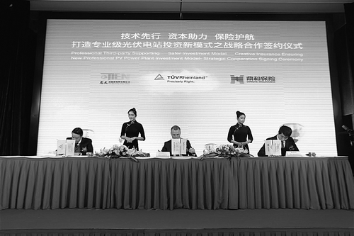 融資新模式以質(zhì)量為保障 在峰會上,忠天新能源集團有限公司、萊茵技術(shù)(上海)有限公司與鼎和財產(chǎn)保險股份有限公司共同簽署了《光伏電站技術(shù)支持及風險管理戰(zhàn)略合作備忘錄》。三方將結(jié)成長期戰(zhàn)略合作伙伴關(guān)系,在光伏及其他新能源領(lǐng)域就金融、保險、項目技術(shù)盡職調(diào)查等方面開展合作。這是國際金融資本與國際專業(yè)技術(shù)平臺之間的跨界合作,旨在共享資源,開創(chuàng)光伏電站投資合作的全新模式。